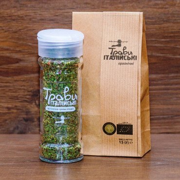 Італійські трави-пікантна суміш прянощів, яка додасть стравам оригінальний ароматно-смаковий букет, характерний для італійської кухні. Використовується при приготуванні піци, супів, соусів, м'ясних і овочевих страв і гарнірів.