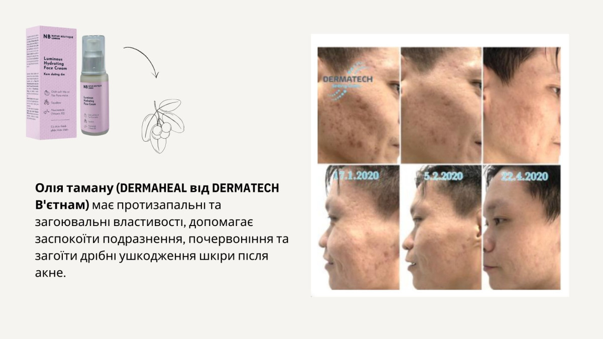 • Олія таману відома своїми регенеративними властивостями.