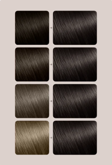 • Якщо у вас більше 50% сивини та відросло 1–2 см коріння після попереднього фарбування рекомендуємо обирати фарбу на тон темніше, ніж ваш натуральний колір або колір по довжині. Час витримки збільшіть до 45 хвилин.