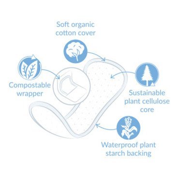 До складу прокладок входять органічна бавовна (не вибілена хлором, при вирощуванні бавовни не використовувалися пестициди, в достатку що застосовуються при вирощуванні звичайного бавовни), целюлоза (не вибілена хлором, отримують з деревної пульпи, сертифікованої FSC), кукурудзяний крохмаль (водонепроникний дихаючий матеріал, одержаний з Неген-модифікованої кукурудзи, біорозкладаний).