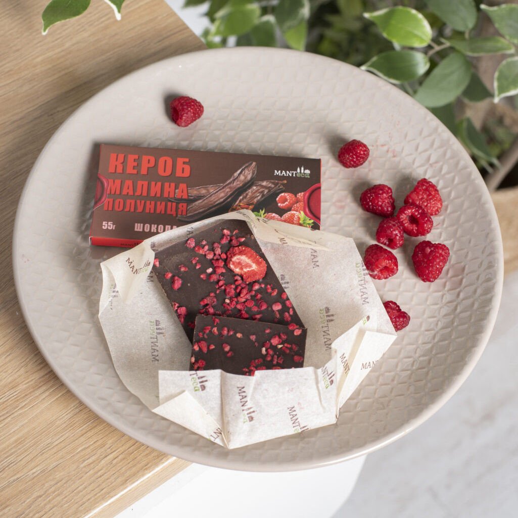 Шоколад з кероба з малиною та полуницею Manteca, 55г