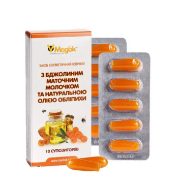 Свічки з бджолиним маточним молочком і обліпиховою олією Meд’ok, 10шт