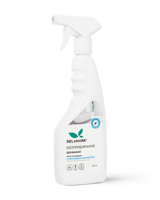 Засіб для миття і очищення ванної DeLaMark з квітковим ароматом доповнює лінійку для прибирання будинку. Призначений для ефективного і безпечного очищення ванної, душової кабіни, раковини, джакузі. Легко видаляє бруд, плями, сліди іржі, мильний і вапняний наліт з керамічних, скляних, фарфорових, пластикових, в тому числі акрилових, та інших неметалічних поверхонь. Не підходить для алюмінію. Не дає шкідливих випарів. Усуває неприємні запахи і дезінфікує. Має зручну упаковку з розпилювачем.