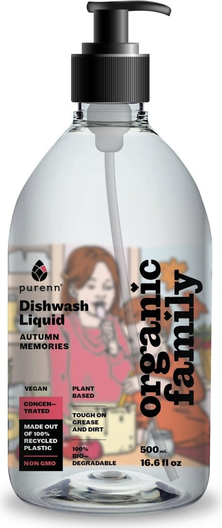 Засіб рідкий AUTUMN MEMORIES для миття посуду з Алое, Ромашкою та Брусницею ORGANIC FAMILY, 0,5л