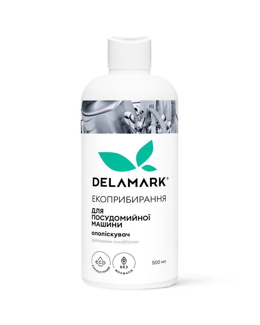 Importantly! The rinse aid for DeLaMark dishwashers does not contain: sodium lauryl sulfate (SLS), chlorine, phosphates and other phosphorus compounds, dyes, fragrances and preservatives.