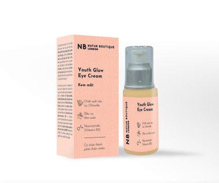 Крем для очей Youth Glow розроблений для догляду за делікатною шкірою навколо очей за допомогою ретельно обраних інгредієнтів, таких як вітамін B3 (ніацинамід), олія шипшини, олія момордики та екстракти алое вера, хризантеми, гінкго, солодки та органічного яблука. Ці інгредієнти інтенсивно зволожують і живлять шкіру, зменшуючи ознаки втоми та старіння.