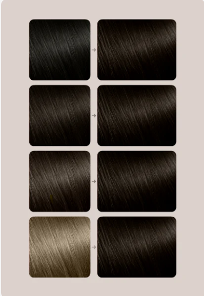 • Якщо у вас більше 50% сивини та відросло 1–2 см коріння після попереднього фарбування рекомендуємо обирати фарбу на тон темніше, ніж ваш натуральний колір або колір по довжині. Час витримки збільшіть до 45 хвилин.
