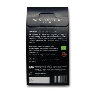 Ingredients: organic black tea. Does not contain colorants or fragrances. Ecocert SA certified.
