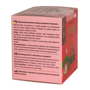 Регулярный прием чая способствует быстрому засыпанию, обеспечивает продолжительный сон и легкое пробуждение. СЕВОНЕ может применяться и в качестве повседневного напитка для профилактики нервных переутомлений, бессонницы.