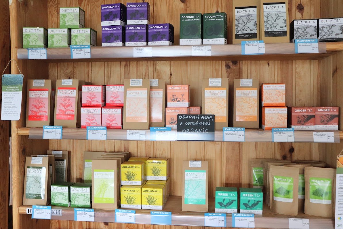 Также, в магазине есть уютная зона кафе с органическими чаями, фиточаями, кофе по-вьетнамски, круассанами на сливочном масле, крафтовым печеньем.