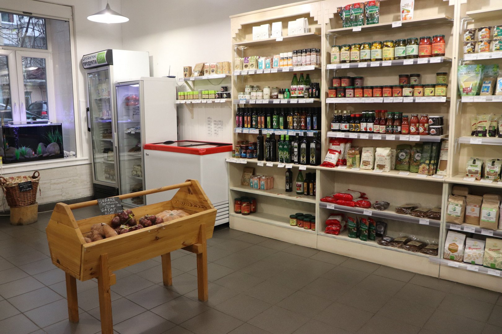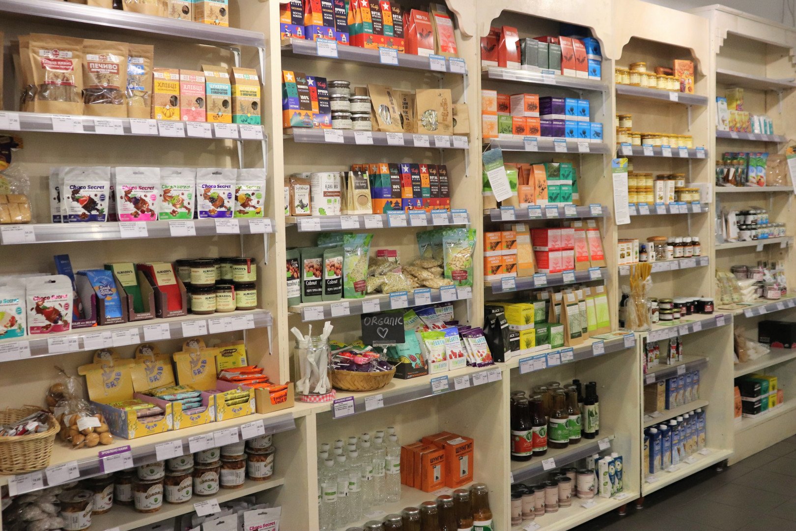 органические продукты питания (вегетарианские, диабетические, безглютеновые), оздоровительные продукты, органическую косметику, экотовары для дома, а также полезные книги.