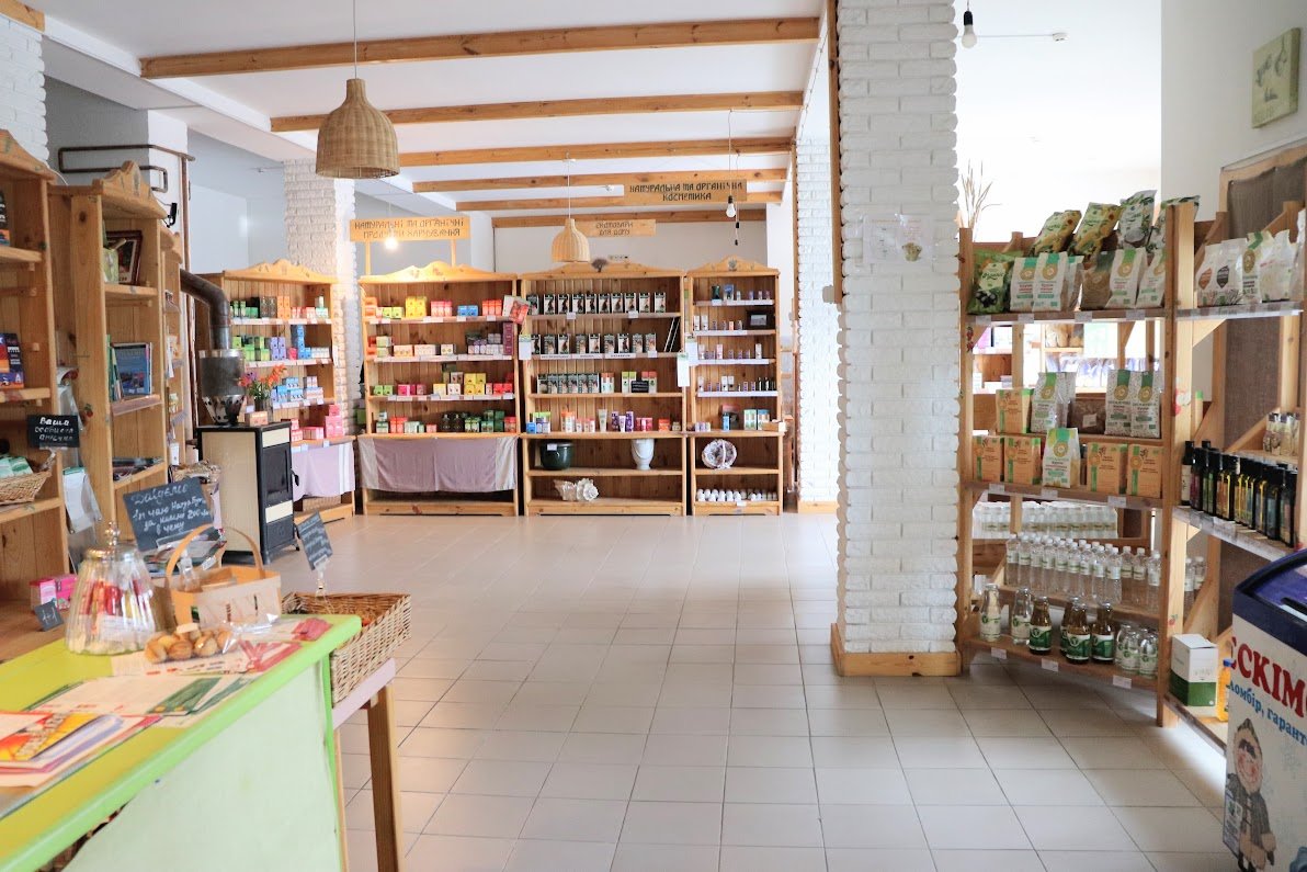 Магазин находится в здании экоусадьбы "Maison Blanche". В ассортименте представлены самые популярные товары: фитопрепараты, органические чаи, медовая продукция, крупы, масла, косметика, эфирные масла, средства женской гигиены, ароматапочки.